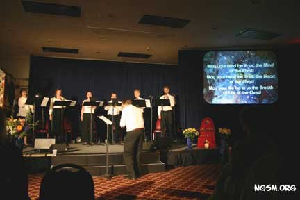 ![]() Michael Robbins dirige el coro en la noche inaugural (Solar Fire Singers) |