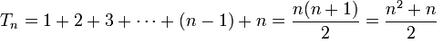A triangular number is the sum of the n natural numbers from 1 to n.