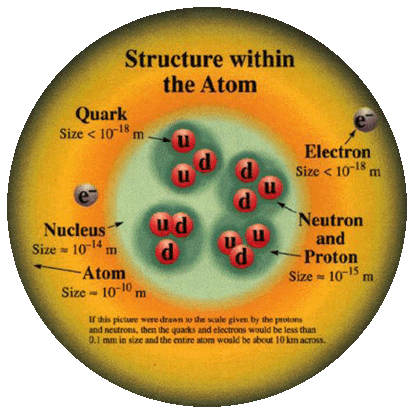 Fact: The elementary particles of matter are called fermions (quarks and leptons). Quarks form the protons and neutrons of the atomic nuclei. The orbiting electrons are leptons.